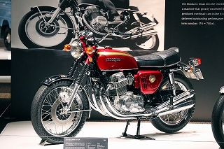 A super sport model equipped with the world's first mass-production four-cylinder OHC engine. With the theme of "achieving higher power while maintaining safety," this machine featured Honda's first double cradle frame and hydraulic disk brake and its appearance led to a worldwide Nanahan (750cc engine bike) boom.